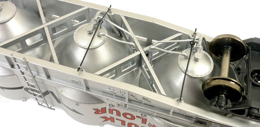 Underfloor detail with cross bracing, full set of piping, actuator bars and correctly shaped hopper cones and flanges.