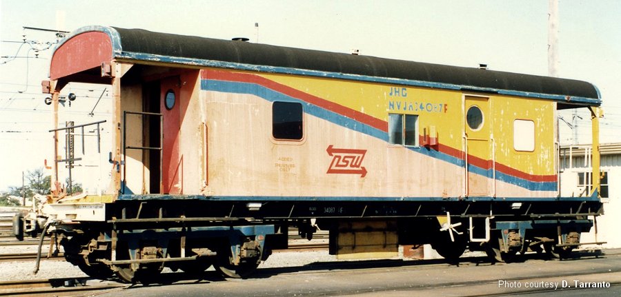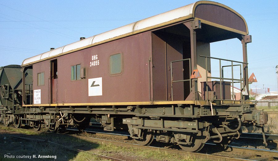 The first two vans were built by Clyde Workshops in 1969-70 and numbered 34001 and 34002; 34001 was built with light draw gear, timber headstock and buffers, 34002 was built with light draw gear and a steel headstock. 34003 and 34004 featured a small extended draught box.