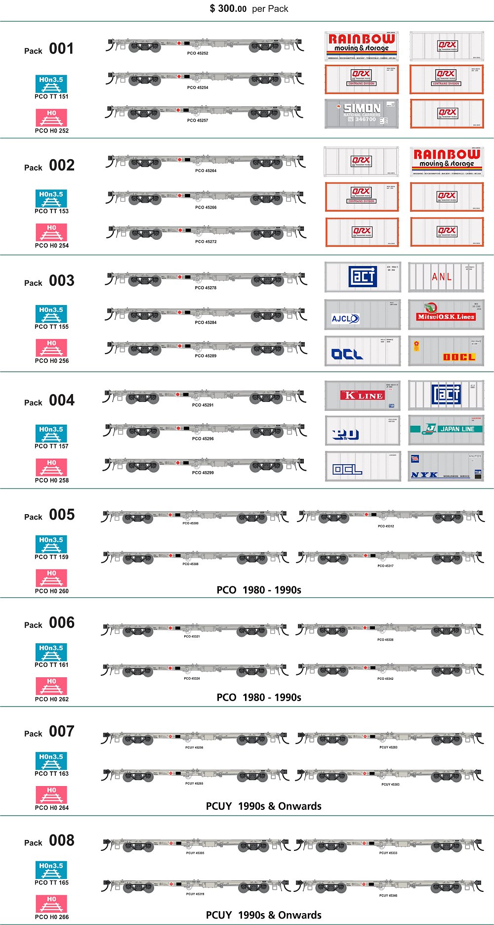 During 1986, 100 PCO Class Container Wagons were built for Queensland Railways by Commonwealth Engineering (Comeng) at Salisbury in Brisbane. The PCO Class was one of several new and modern "skeletal" type container wagon designs which entered QR service during the 1980's and 1990's.